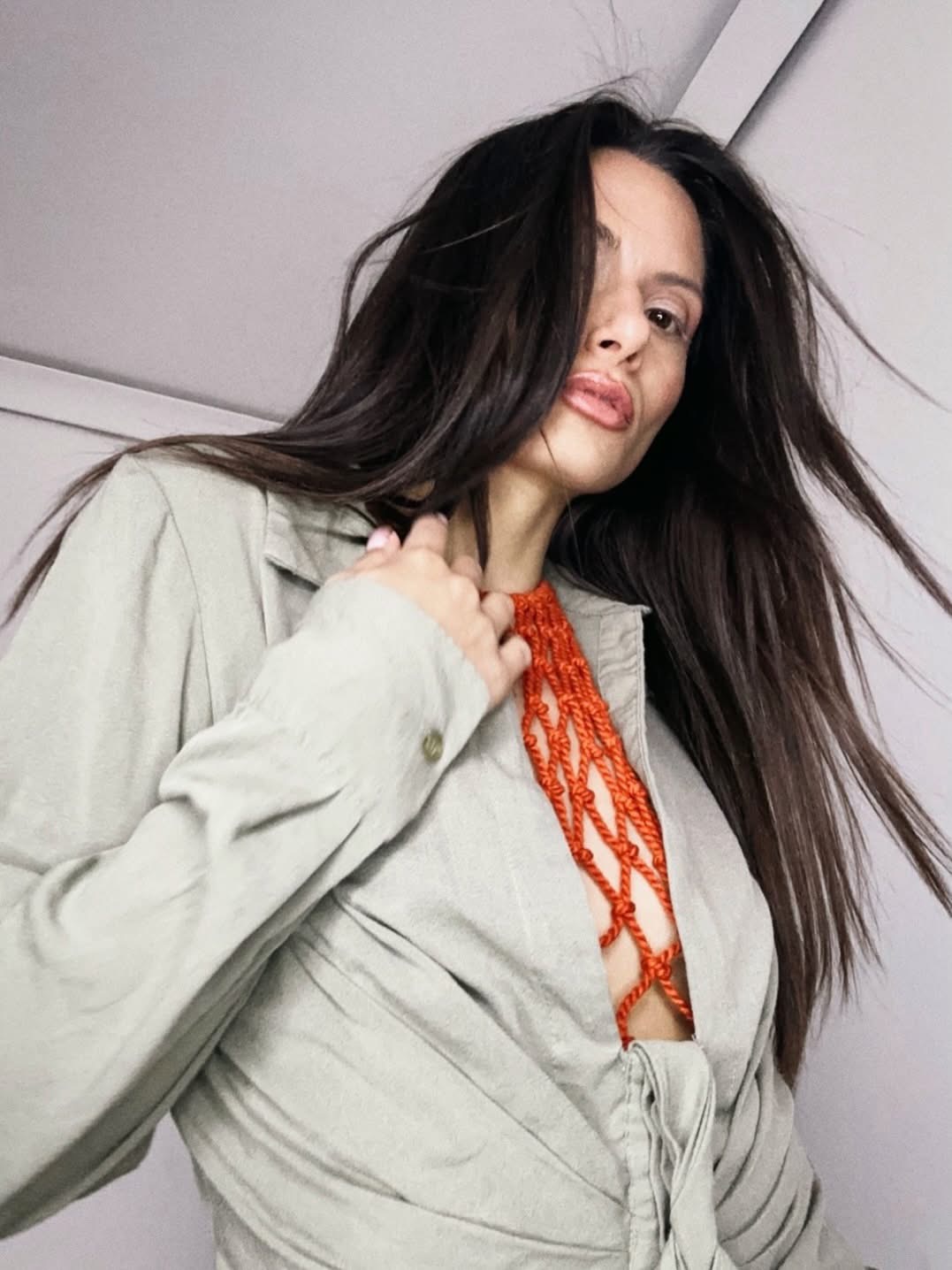 Filed under Bamboo Top, Burnt Orange Fashion, Sustainable Luxury, Hand-knotted Mesh, Eco-friendly Clothing, Marrakesh Style, Resort Layering, Natural Fiber Art, Top, Open-back mesh top.