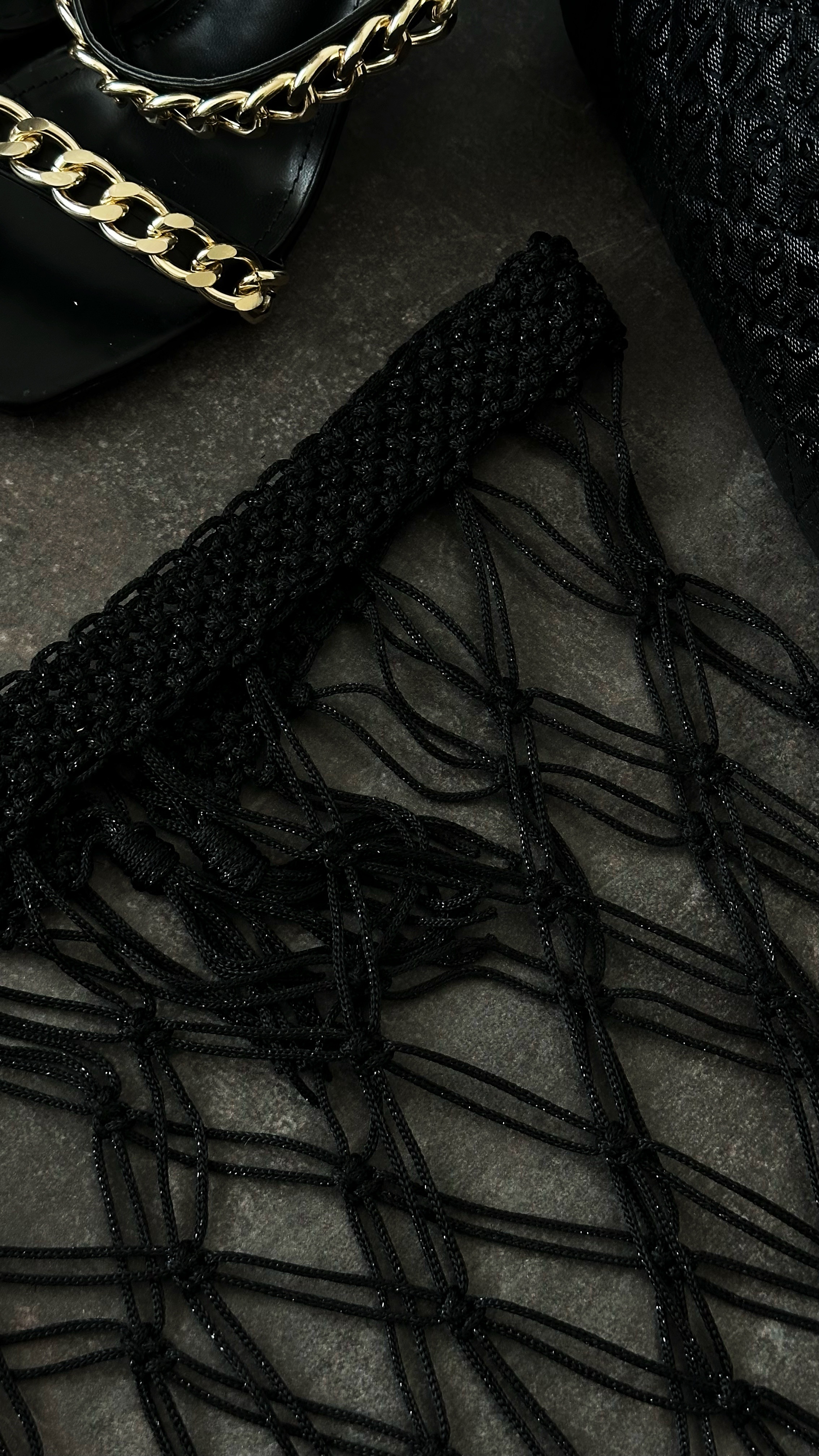 The skirt is built around the concepts of rhythm and motion, featuring a large-scale geometric weave at the top that transitions into mesmerizing floor-length fringes. Its jet-black shade and open construction allow for ultimate styling freedom—from a bold urban look with denim to exclusive resort chic. A true statement piece that turns every presence into an event.